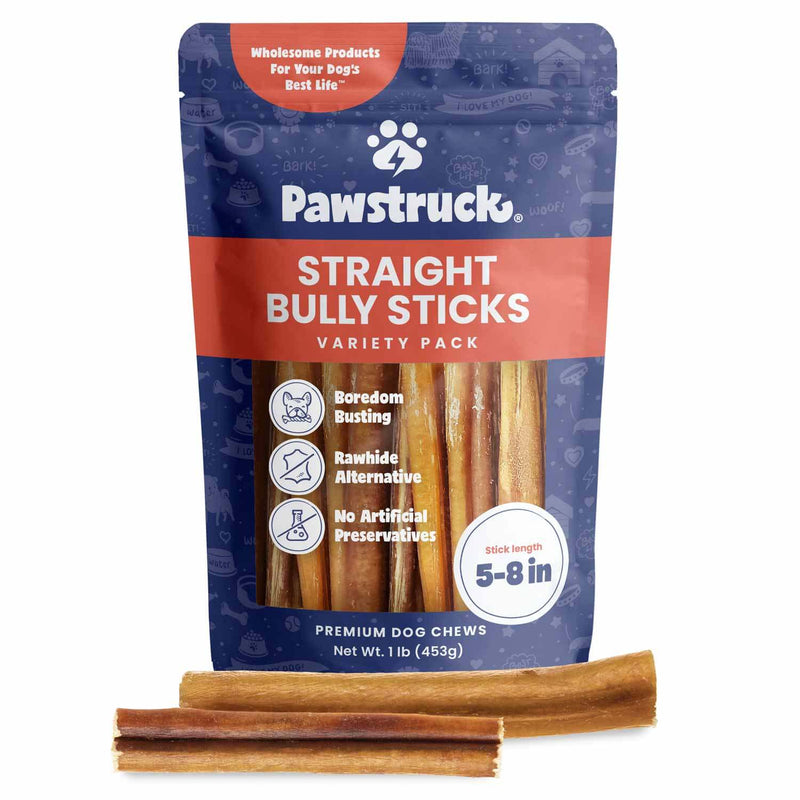 Get great value with Pawstruck Straight Bully Sticks, sold by weight for consistent pricing. No need to worry about stick thickness—smaller sticks mean more per bag, larger sticks mean fewer—but the bag always matches the advertised weight.
