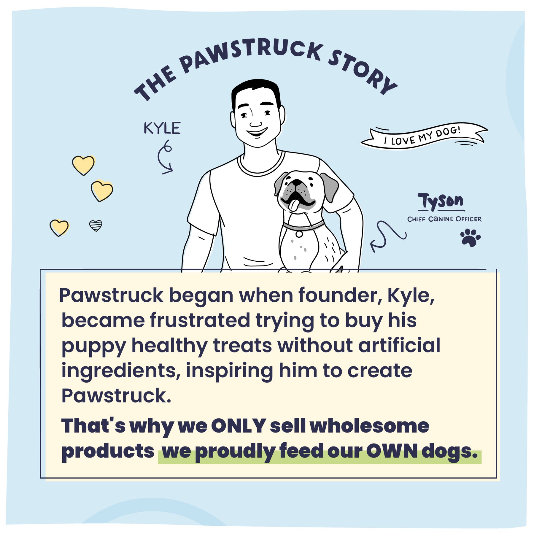 Pawstruck began because founder and CEO Kyle became frustrated while trying to buy his puppy healthy treats without the bad stuff, inspiring him to create Pawstruck.