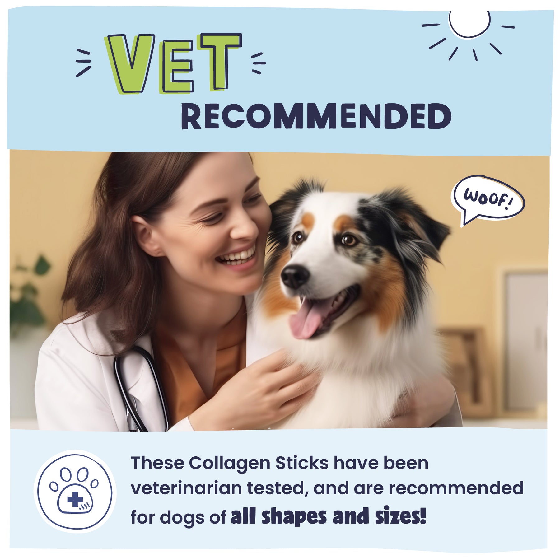 This low-fat, high-protein treat helps keep dogs from packing on the extra pounds! Our Beef Collagen Sticks are packed with protein, which supports muscle development and tissue repair for active dogs.