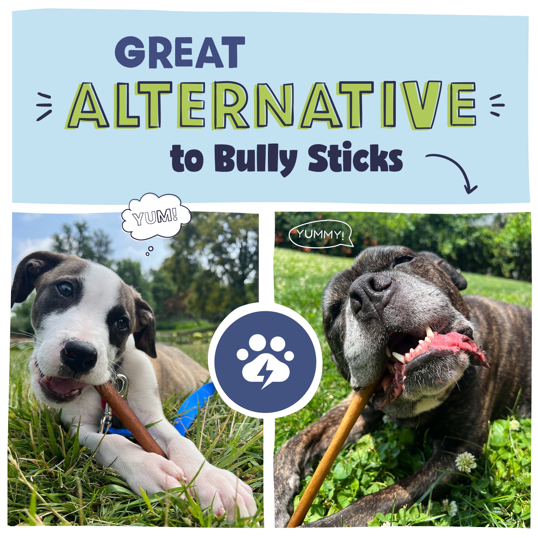 Our Beef Collagen Chews are a well-known boredom buster—thicker than a standard bully stick and last way longer than jerky treats. And when it comes to chew time, these treats can be comparable to a bully stick!